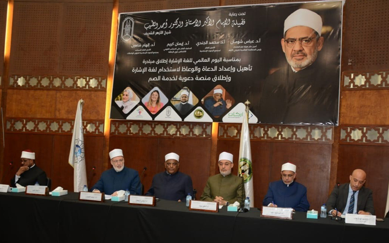 جاء ذلك خلال حفل إطلاق مبادرة تأهيل وإعداد الدعاة والوعاظ لاستخدام لغة الإشارة من مركز الشيخ زايد لتعليم اللغة العربية للناطقين بغيرها، بحضور الدكتور محمد الضويني وكيل الأزهر الشريف، والدكتور نظير عياد مفتي الجمهورية والدكتور داود سلامة رئيس جامعة الأزهر، والدكتورة إيمان كريم رئيس المجلس القومي للأشخاص ذوي الإعاقة والدكتور محمد الجندي أمين عام مجمع البحوث الإسلامية، اللواء وائل بخيت نائب رئيس المنظمة العالمية لخريجي الأزهر، والدكتورة إلهام شاهين مستشار شيخ الأزهر، وأحمد أبو شوك، مدير مؤسسة أركان للتنمية.